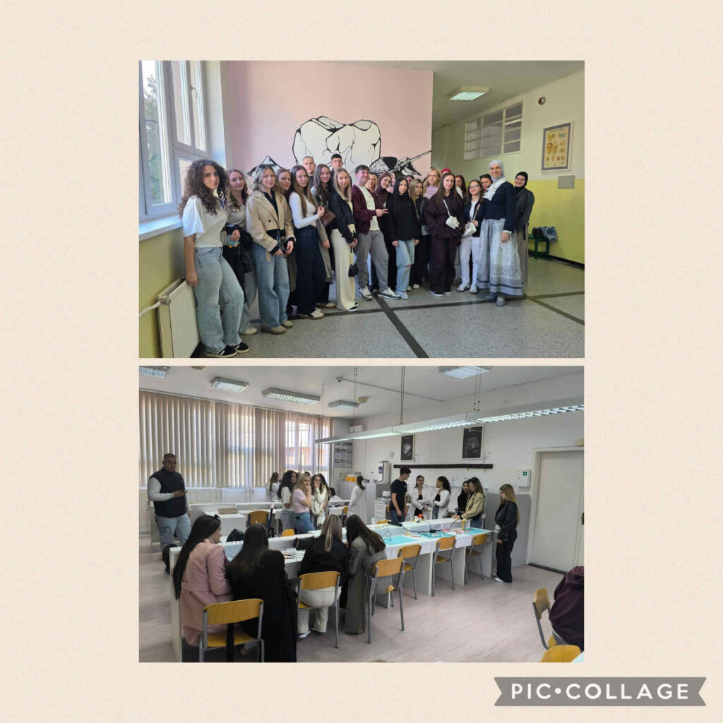 Naša škola je prošle sedmice bila ispunjena posebnom energijom. Imali smo čast i veliko zadovoljstvo ugostiti učenike drugog razreda Medicinske škole Zenica, smjer zubni tehničar. Uz opuštenu šetnju i obilazak naših kabineta, laboratorija i učionica gosti su imali priliku vidjeti kako mi svakodnevno “vježbamo” za naše buduće zanimanje. Ipak, najljepši dio posjete bilo je zajedničko druženje u zubitehničkom laboratoriju našeškole, gdje su učenici II-1 odjeljenja ugostili goste. Uz kolače i smijeh pričalo se o školskim izazovima ali i onim običnim, tinejdžerskim temama koje nas sve povezuju. Ovakvi susreti podsjećaju nas da naše zanimanje nije samo rad sa gipsom i keramikom, nego i građenje mostova prijateljstva i saradnje sa kolegama.