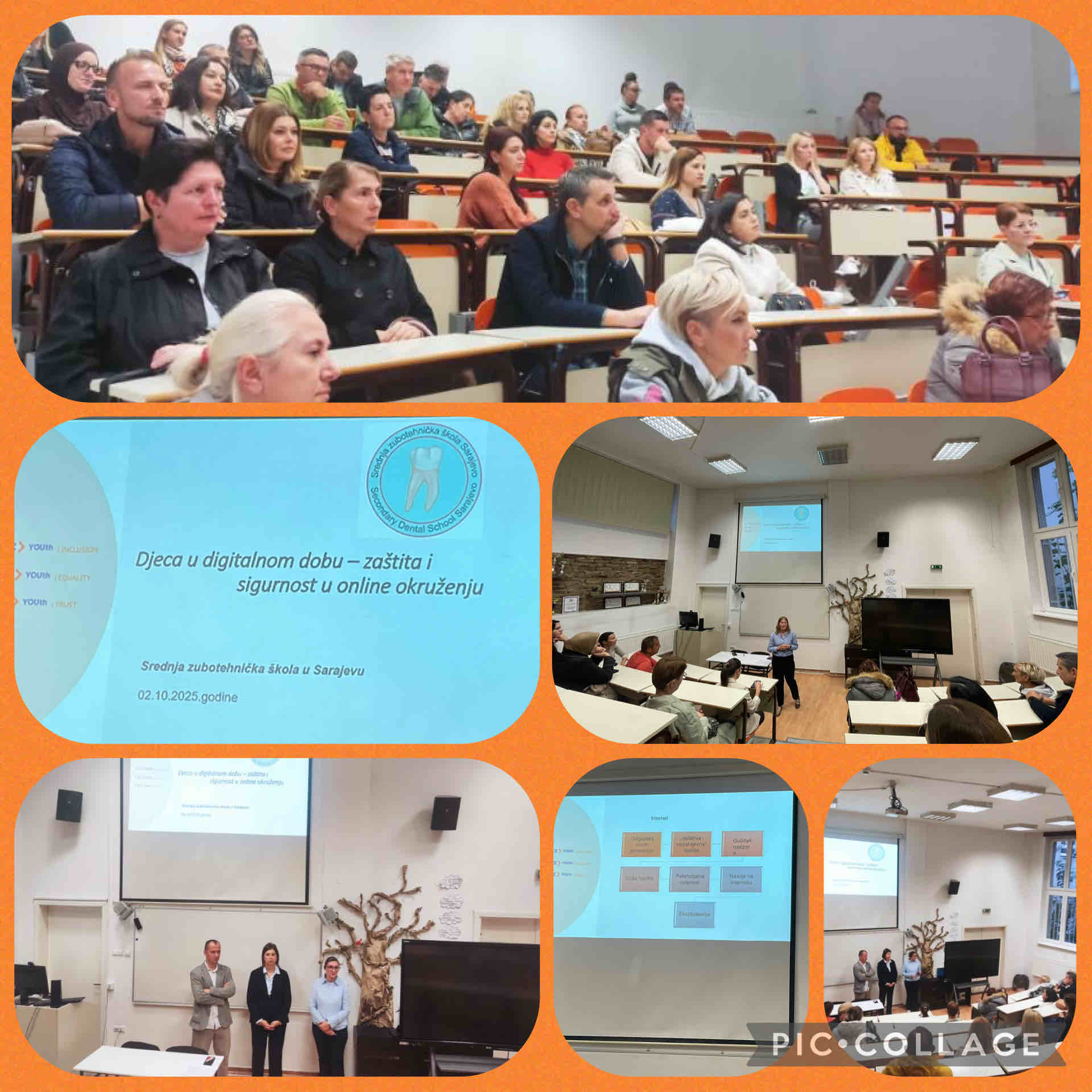 Spomenutim Pravilnikom, tačka b), propisana je i edukacija roditelja iz oblasti zaštite učenika u digitalnom okruženju na temu: “Digitalni mediji i odgoj djeteta – zaštita učenika u digitalnom okruženju”, koju je realizirala i roditeljima predstavila, profesorica informatike,