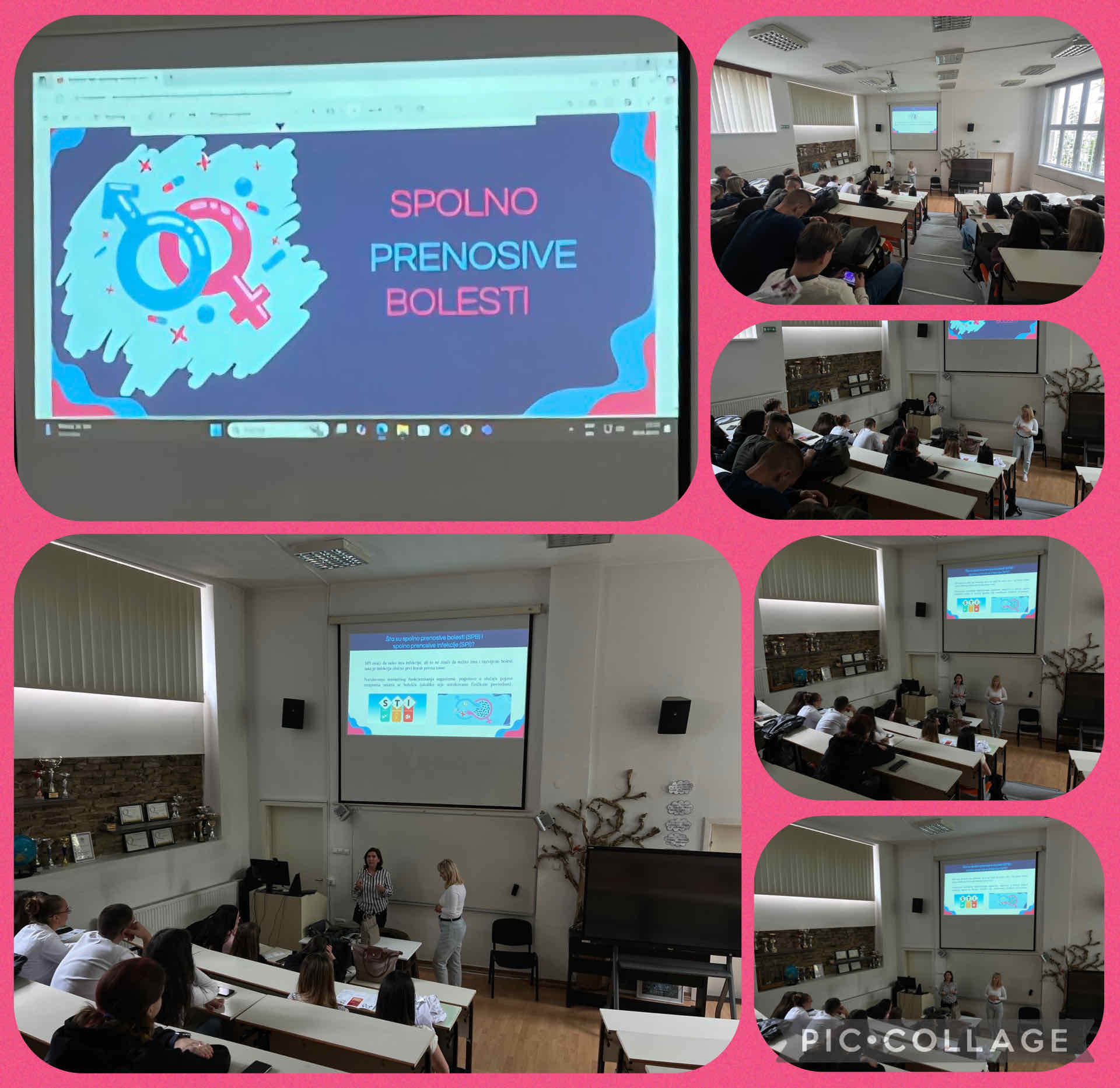 Prvi dio predavanja je održao specijalist epidemiologije iz Zavoda za javno zdravstvo KS sa temom o načinu prenošenja spolno prenosivih bolesti, vrstama infekcije, mjerama zaštite, značaju kontracepcije i smanjenju rizičnog ponašanja. Poseban naglasak je stavljen na infekcije koje se mogu spriječiti vakcinacijom, poput hepatitisa B i HPV infekcije.