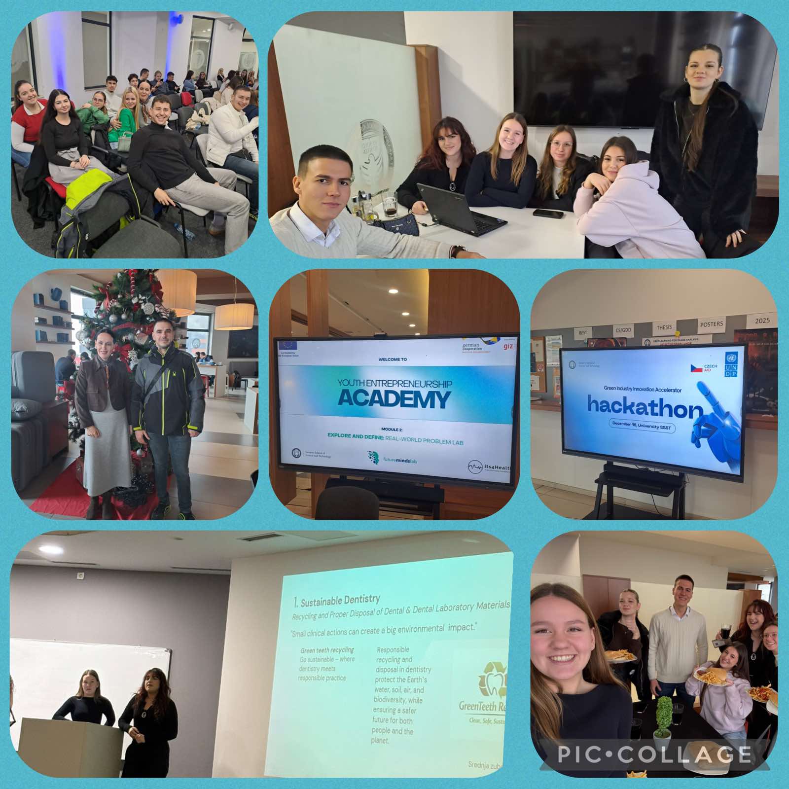 U utorak 16. decembra 2025. godine naši učenici učestvovali su u projektima koje organizuje Sarajevo School of Science and Technology. Šest učenika drugih razreda učestvovalo je u takmičenju Green Innovation Hackathon. Pokazali su izuzetnu vještinu prezentovanja na engleskom jeziku.