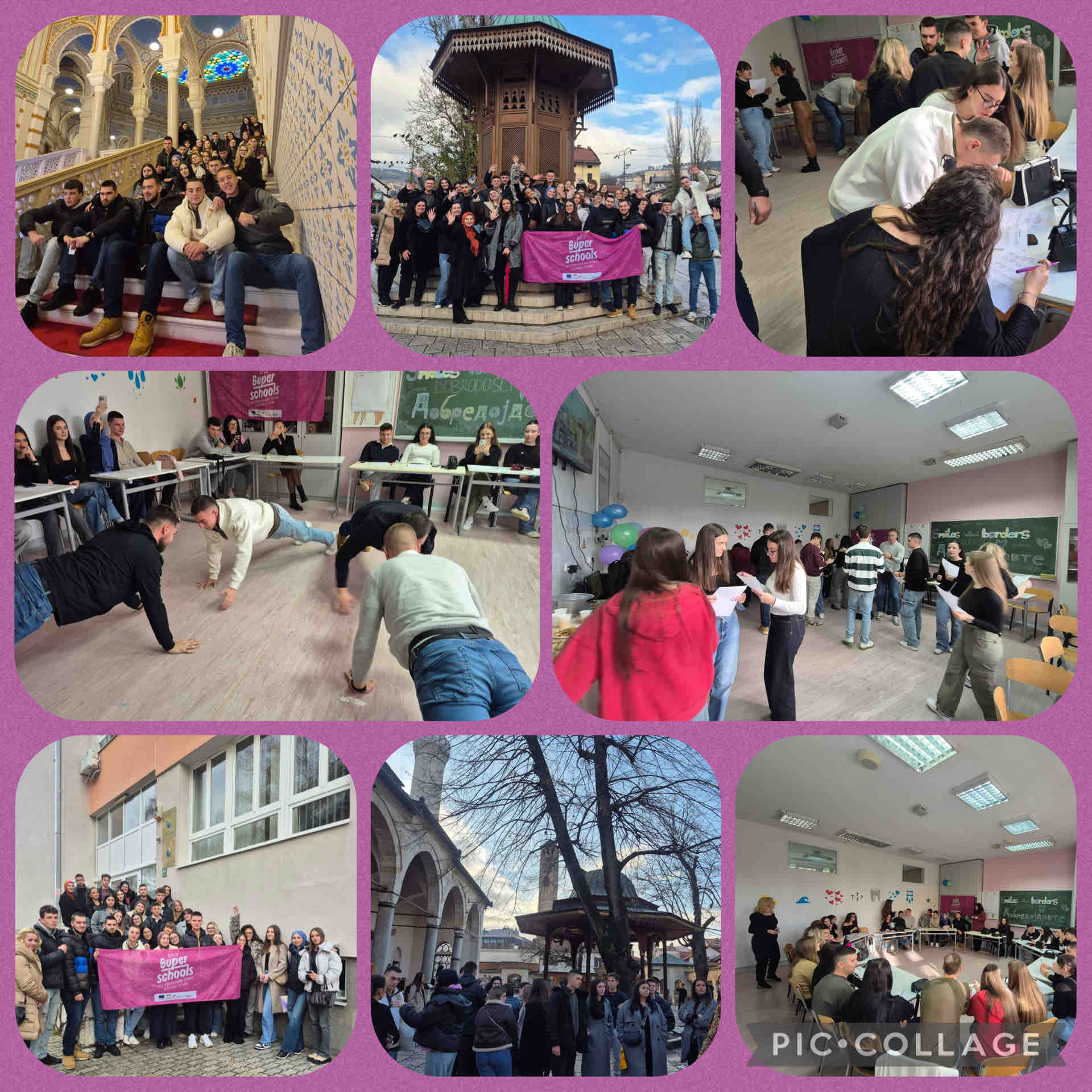 ostvareno je partnerstvo sa OSMU “D-r Jovan Kalauzi” iz Bitole, Sjeverna Makedonija. Od 25. 11. do 30 .11. realizovan je prvi dio, odnosno posjeta predstavnika škole iz Bitole našoj školi. Učestvovalo je po 15 učenika i dvije profesorice-koordinatorice projekta. Naziv projekta je “Smiles without Borders”, a cilj je interkulturalni i interreligijski dijalog, izgradnja mira, jačanje empatije kod mladih. Sve planirane aktivnosti su vrlo uspješno realizovane, uz izuzetno učešće i zadovoljstvo svih učenika, kao i saradnika uključenih u provedene aktivnosti. Drugi dio projekta, odlazak učenika naše škole u Bitolu, planiran je za 23. 3. 2026. godine. Superschools program je dio multidonorskog projekta „Program školske razmjene na Zapadnom Balkanu“, koji zajednički finansiraju Evropska unija i Njemačko savezno ministarstvo za ekonomsku saradnju i razvoj (BMZ), a sprovode Deutsche Gesellschaft für Internationale Zusammenarbeit (GIZ) i Regionalna kancelarija za saradnju mladih (RYCO).
