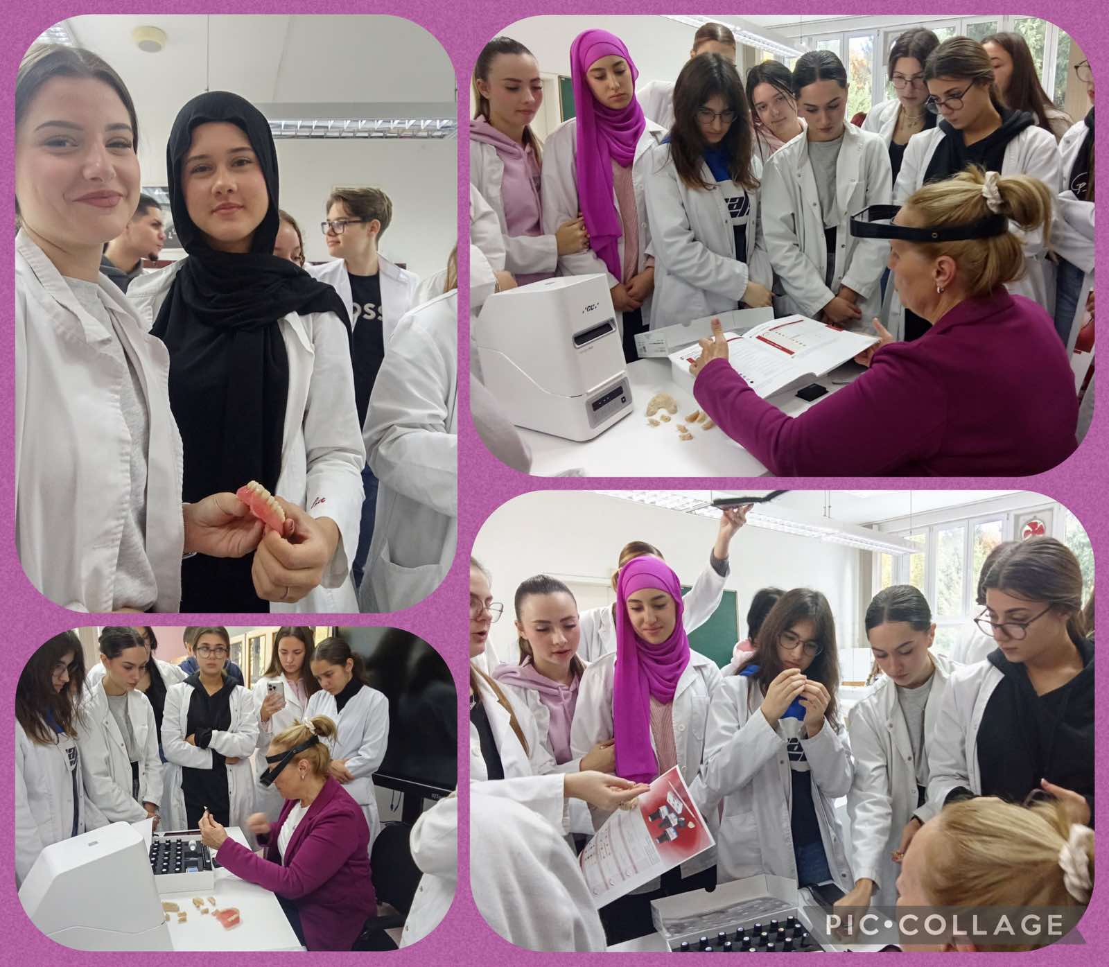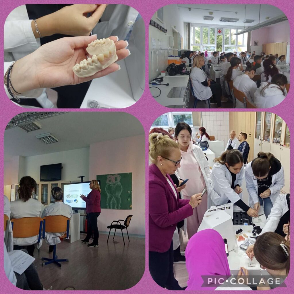 Naša škola imala je čast ugostiti stručnjake iz kompanije Interdent Celje, Mirjanu Zagoričnik i Tarika Hadžiahmetovića, bivšeg učenika naše škole. Mirjana Zagoričnik, cijenjeni edukator Interdenta, održala je inspirativno predavanje na temu Digitalizacija u stomatološkoj protetici, predstavljajući učenicima najnovije trendove i tehnologije koje oblikuju budućnost zubne tehnike.