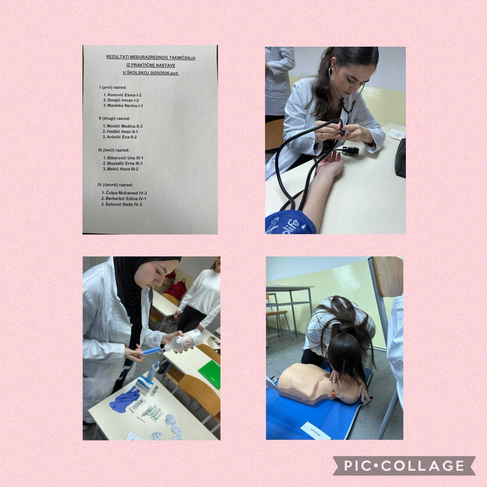 Dio ovog takmičenja bio je rezervisan i za učenike drugog razreda smjera stomatološka sestra-tehničar, koji su se takmičili u praktičnom dijelu predmeta Njega bolesnika, demonstrirajući spremnost u obavljanju ključnih medicinskih postupaka.